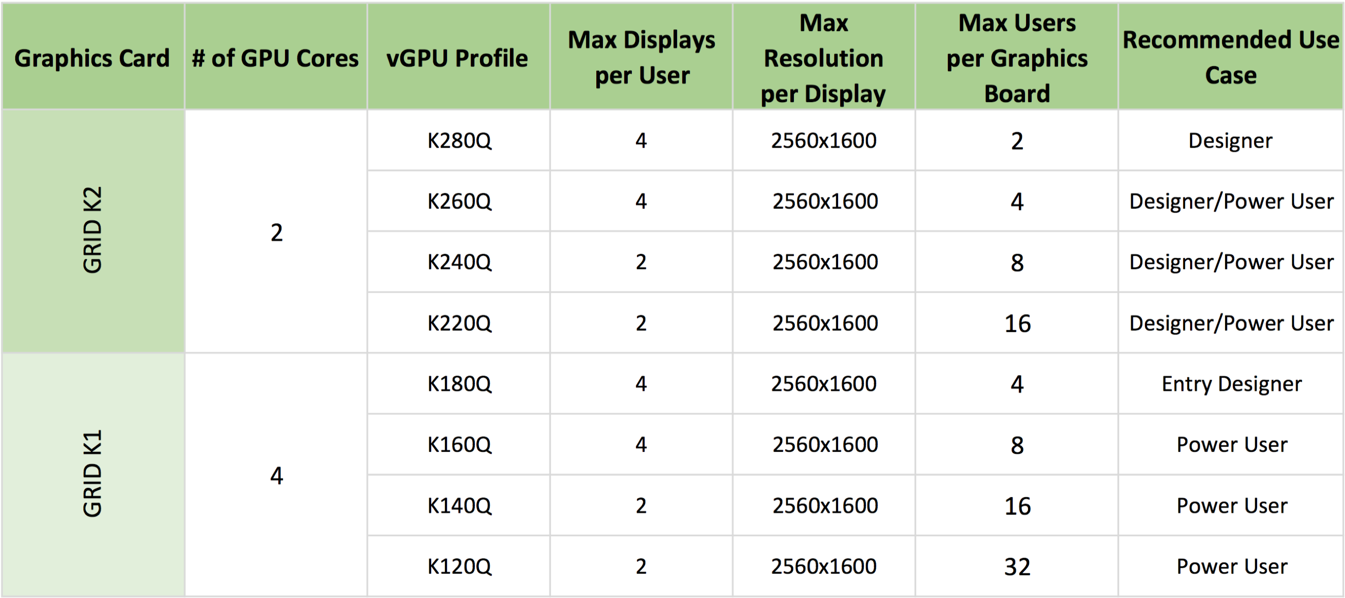 As you can see there is a ton of potential profiles that you can assign to users, you need to take careful consideration into these profiles as the max number of users per board will add up. I have worked with several customers establishing baselines from existing physical workstations to determine the proper vGPU profile to use.