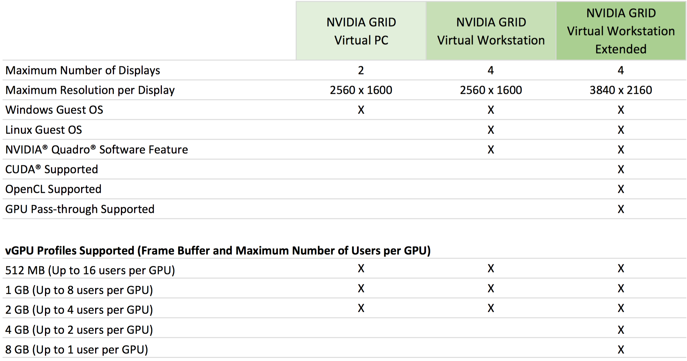 Wait what? NVIDIA is in the licensing business, unfortunately yes they are. The old GRID 1.0 model of choosing the various vGPU profiles depending on the card you have purchased is long gone. With GRID 2.0 you license based on the use case that you want to deliver. I have a picture of the 3 use case options with the associated vGPU profiles they offer below.